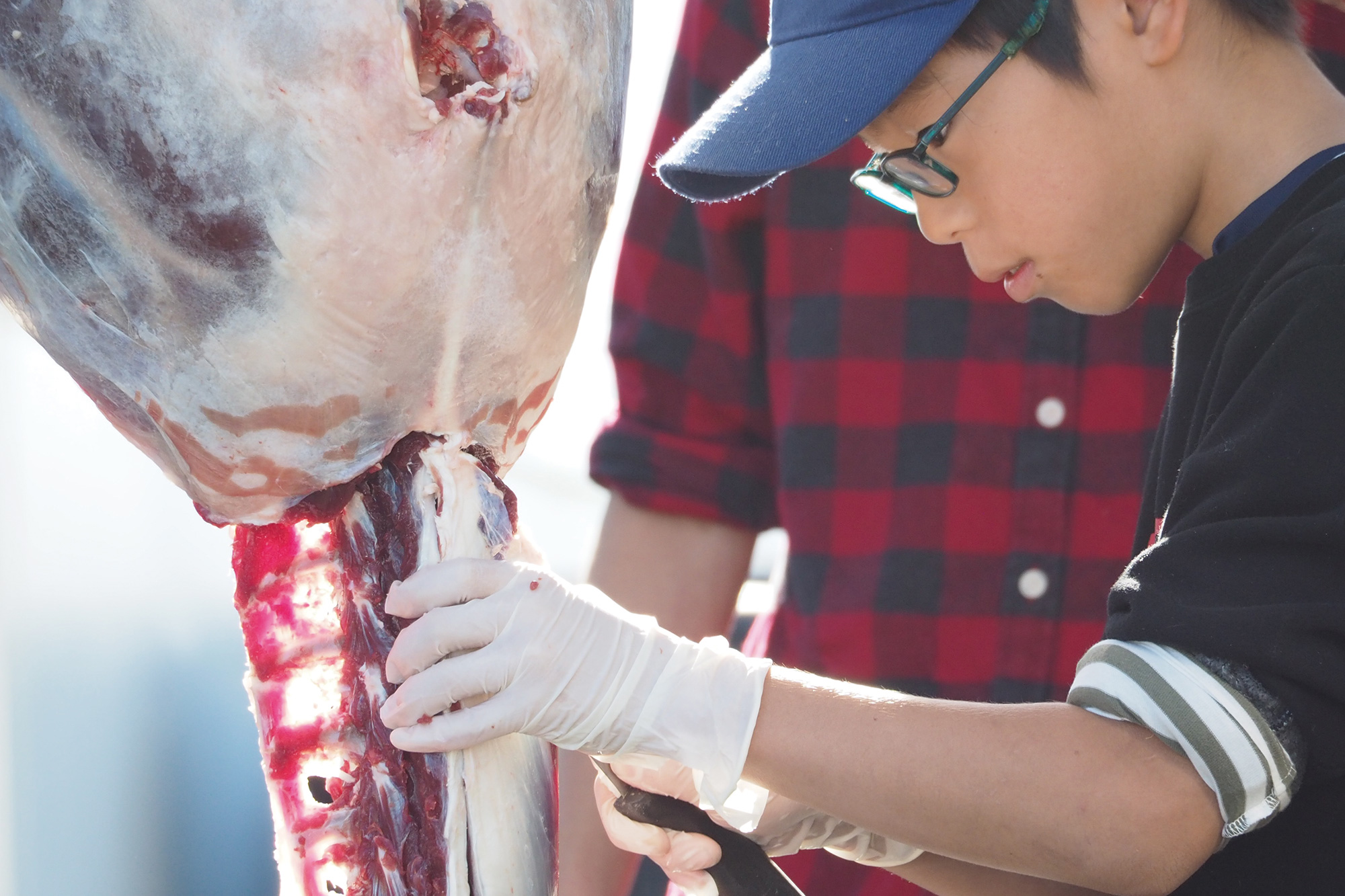 骨や筋肉、内臓を一つずつ見ながら、命が食べものへと変わっていく過程を学びます。