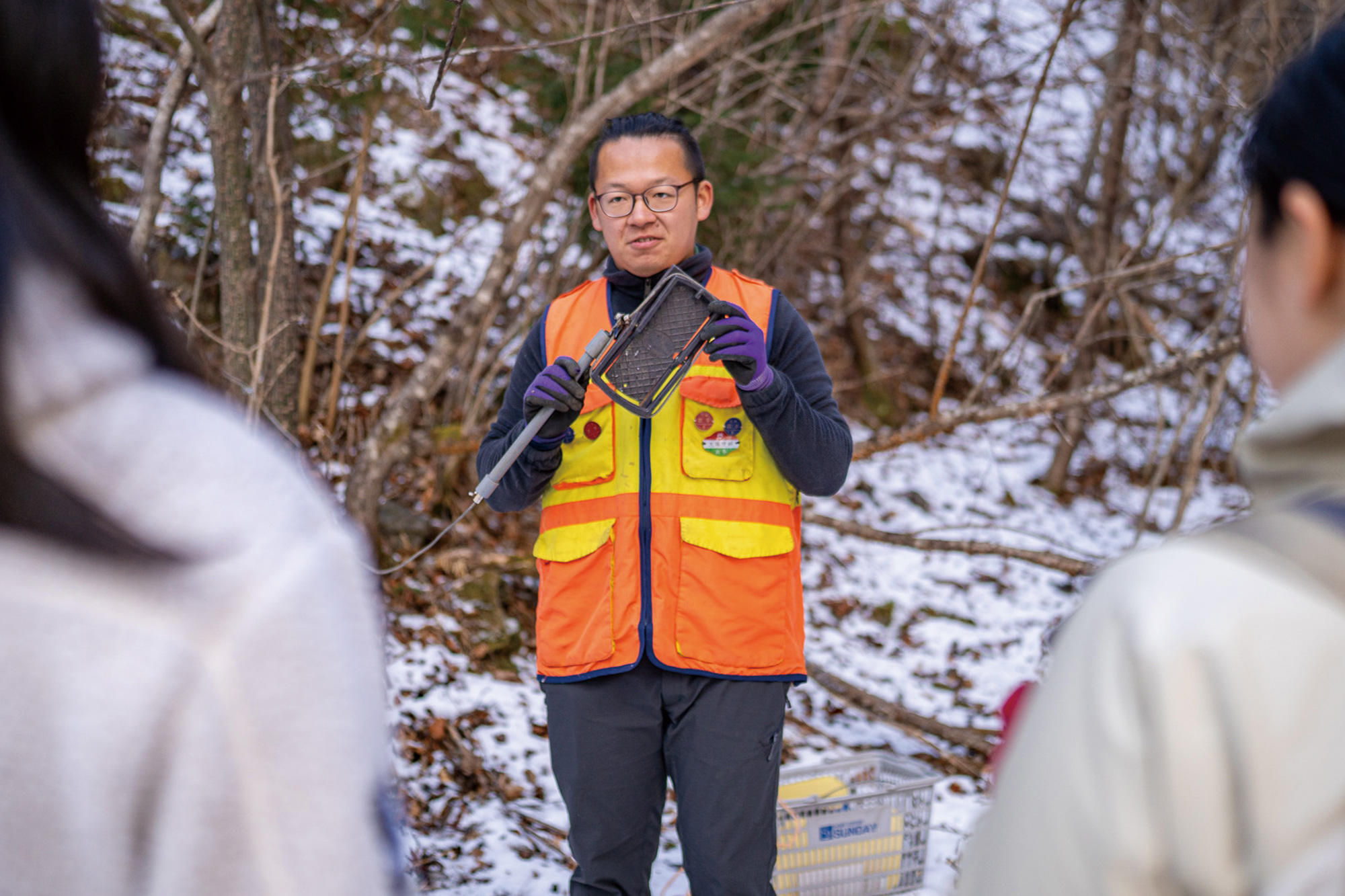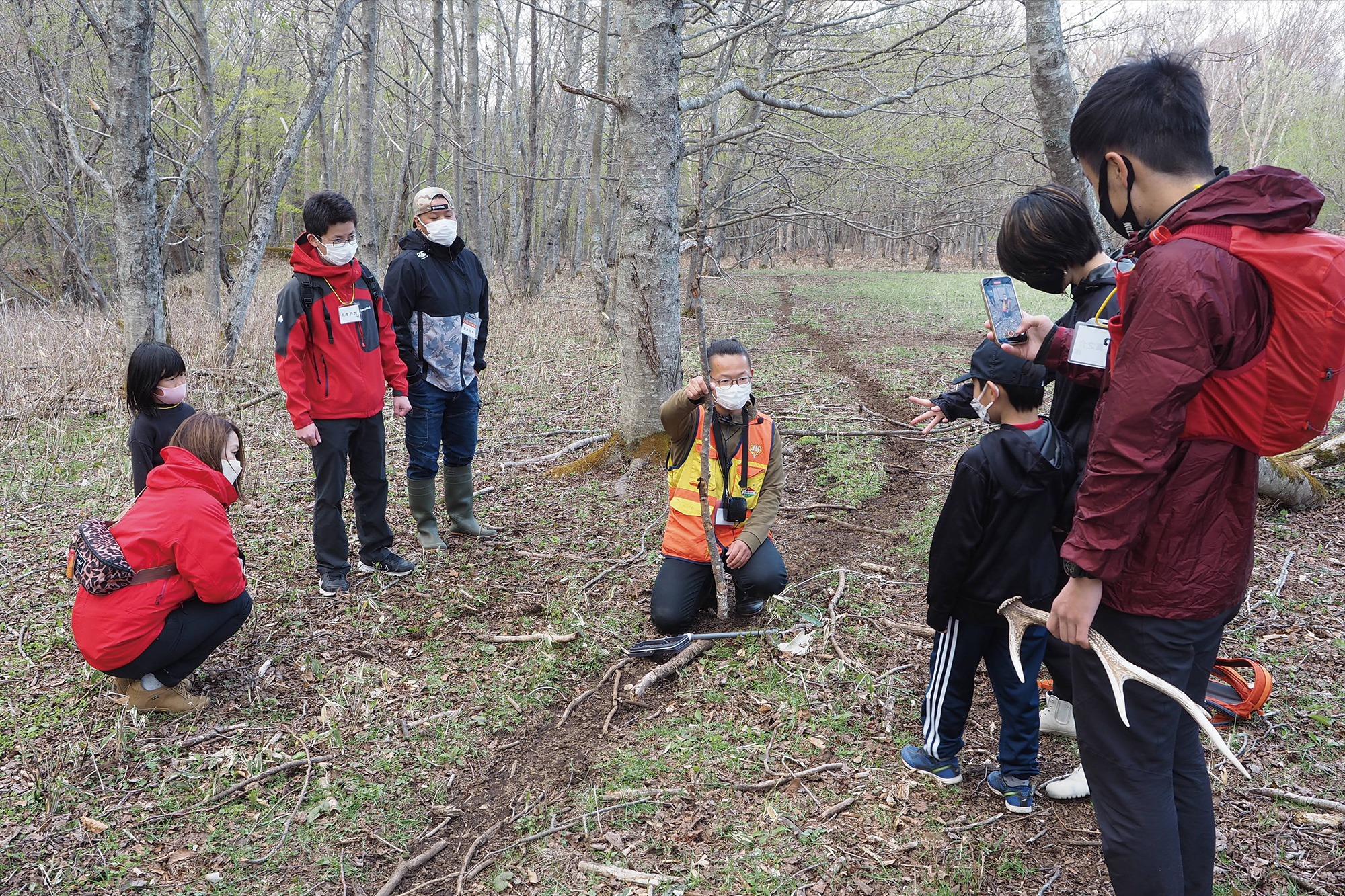 若手ハンターと一緒に山へ入って、動物の痕跡を探しましょう!