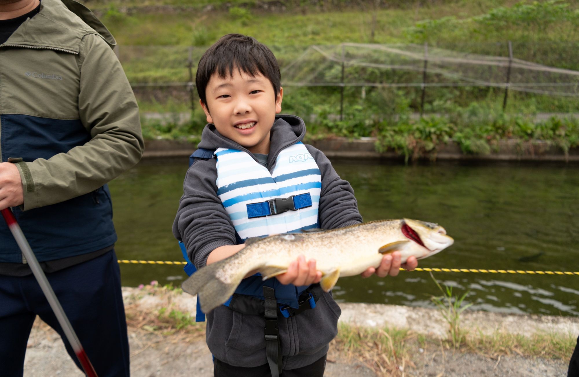 立派に育った桃畑サーモンを釣ってみましょう!そこらの釣り堀のマス釣りとは比になりません。40cmを超えるサーモンの強烈な引きにあなたは耐えられますか?