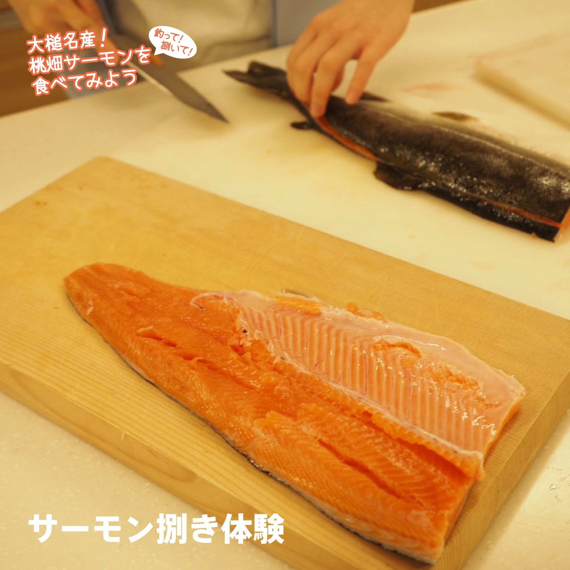 みんな大好きサーモン!ですが、生きているサーモン見たことありますか? 大槌のブランド!桃畑サーモンを養魚場で釣って、さばいて、食べてみよう! 自分の力で釣って、さばいて、食べるお寿司は絶品です! サーモン生産者さんやサケ研究者による、「さけとサーモンの違い」等の小話も必見です。